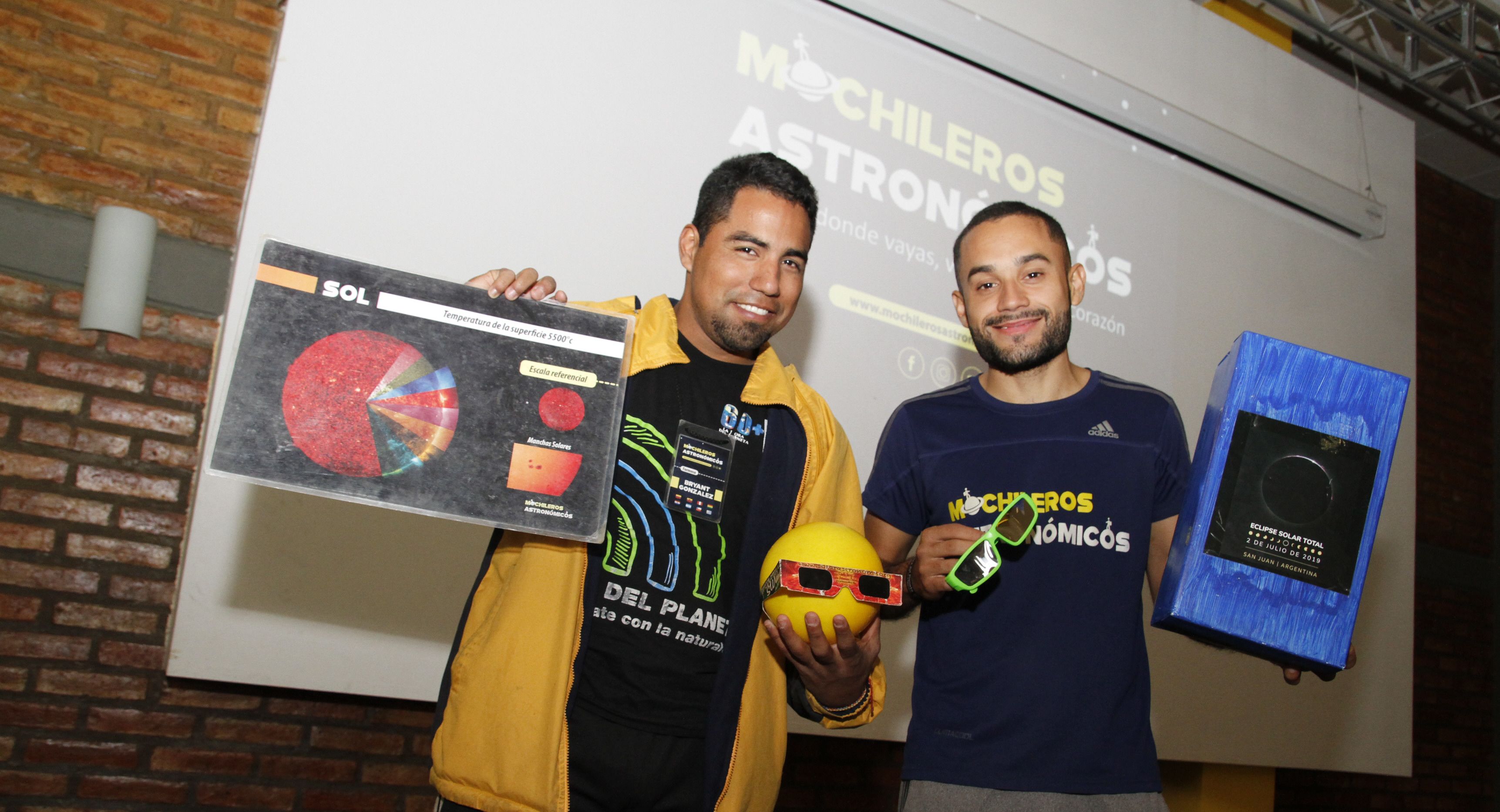 Bryan González, de 29 años, y Pablo Urrea, de 26, son astrónomos venezolanos que lograron combinar pasión y sobrevivencia. Recorren Latinoamérica para enseñar astronomía hasta en los pueblos más recónditos a cambio de hospedaje y comida. Estos mochileros astronómicos ahora están en San Juan para observar el eclipse solar y visitaron varias escuelas para enseñarles a los chicos de manera práctica y divertida sobre el mundo astral.