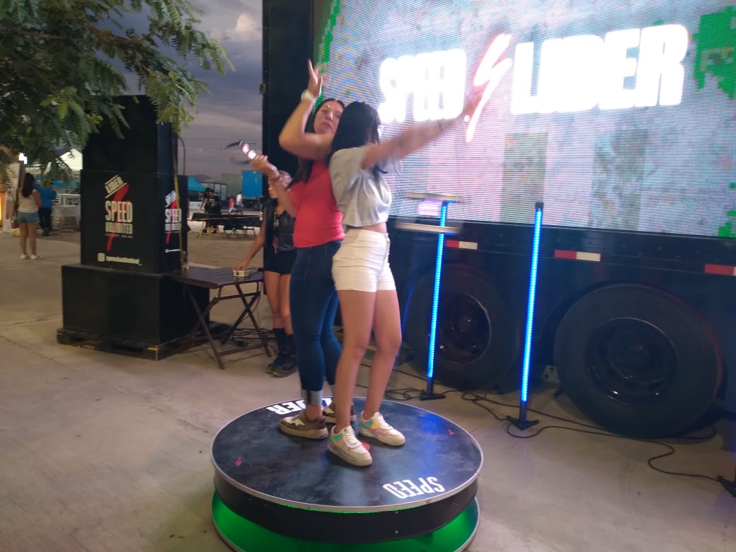 Una de las principales atracciones de la Fiesta Nacional del Sol 2023 son los videos 360°. Hay algunos stands, como el de la marca Speed y el de Conectados, que tienen las plataformas y el público hace largas filas para acceder.