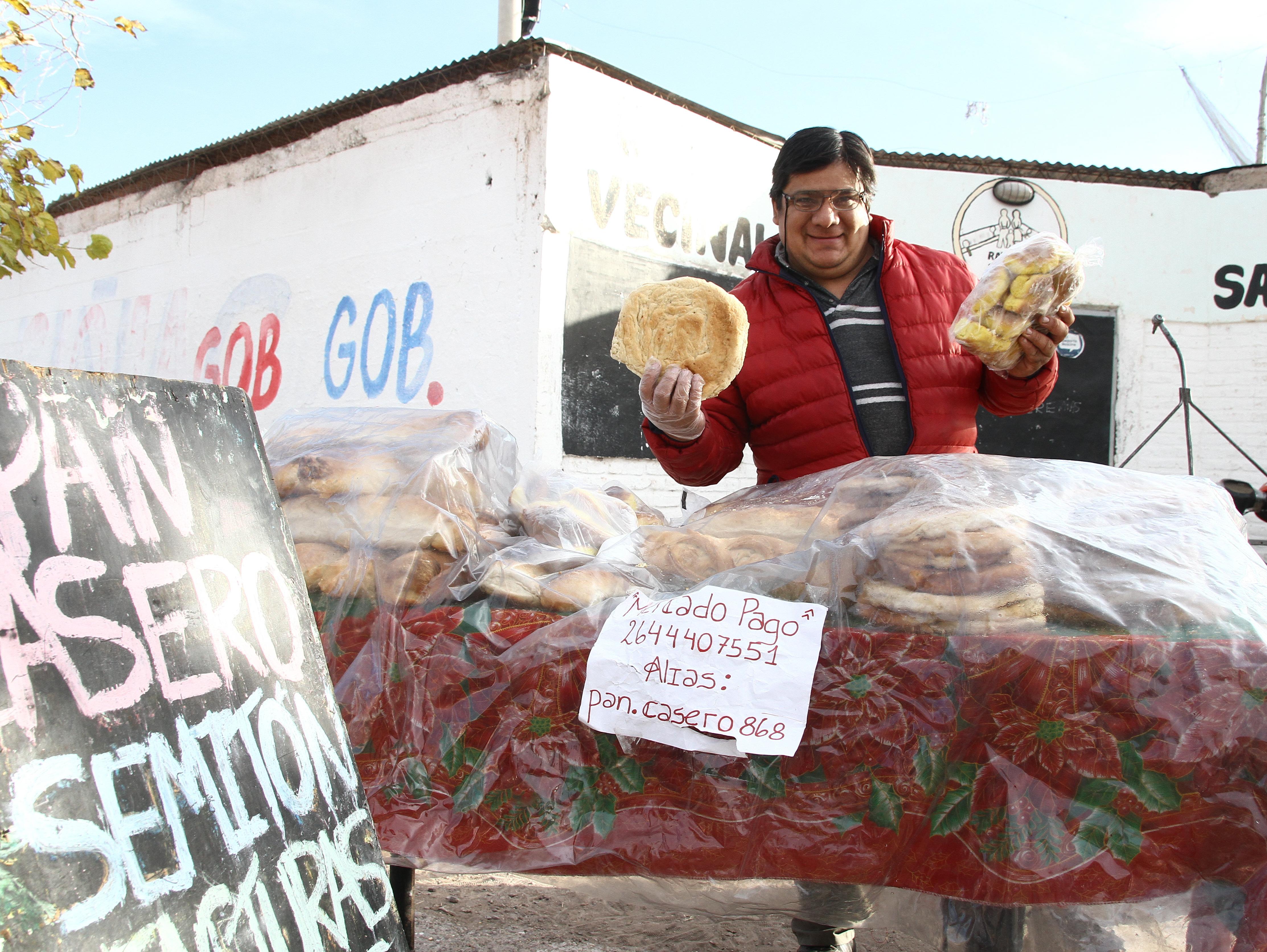 Desde las 7,30 de ayer, José Quinteros instaló su puesto de venta de productos de panificación caseros, en una de las esquinas de la Escuela 14 de Febrero, en el departamento Rawson, con la esperanza de tener un buen día de venta. Dijo que permanecía en ese lugar hasta el cierre de los comicios.