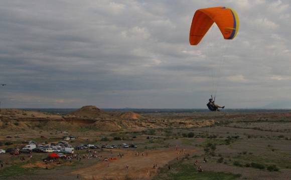 Por el fuerte viento, los pilotos y el público debieron aguardar 3 horas para disfrutar del 1er Encuentro Sanjuanino de Parapentes.