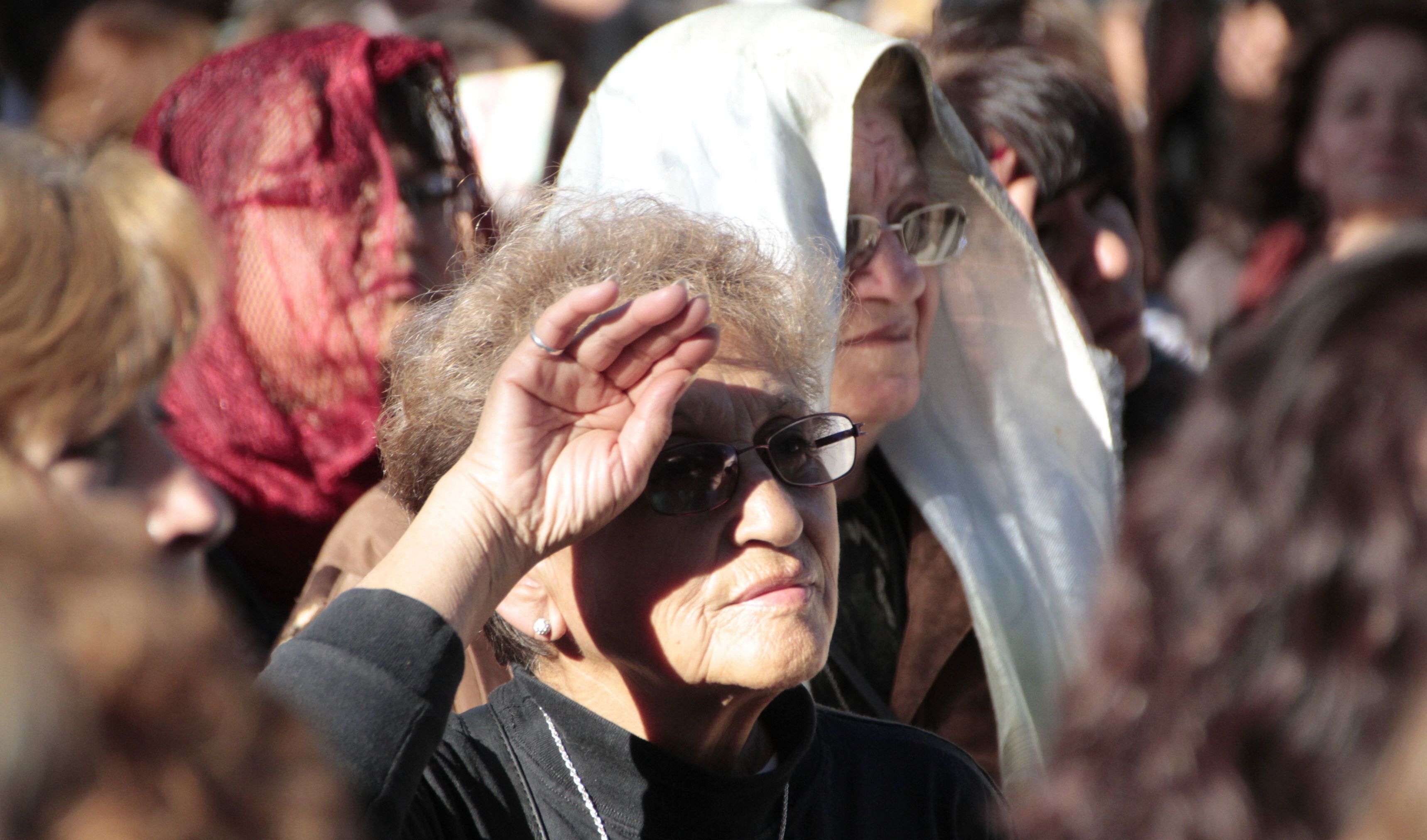 En el medio de la calle, la organización puso sillas para que los fieles estuvieran cómodos. Sin embargo, fueron pocas por la cantidad de gente que hubo. Algunos fieles se sentaron en las escalinatas de la catedral o en el cordón de la vereda. También hubo algunos que llevaron sus propios banquitos para sentarse.