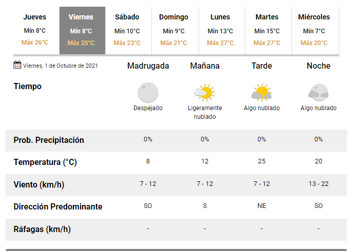 - La jornada estará algo nublada a despejada y el viento será del sur, rotando al sudeste.