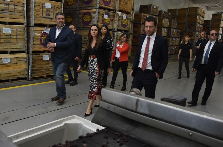 El día en que la embajadora de Venezuela en el país, Elisa Trotta, observó con detenimiento todos los procesos de producción en la planta de Lomas del Sol en Albardón. Estuvo acompañada de Francisco Paladini, dueño de la firma.