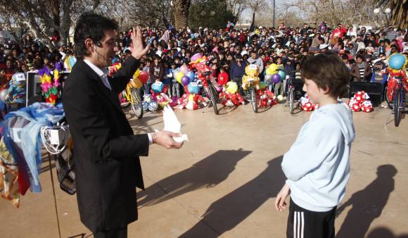 "Soplen fuerte”, dijo el mago Bombín. Y todos los niños que coparon la plaza pocitana inflaron los cachetes. Mientras, en el Parque de Rawson, los chicos se sentaron como indios sobre el pasto e hicieron un picnic para disfrutar el chocolate. En ambos casos, los padres y madres los acompañaron y tomaron mates bajo el sol. Así, las familias festejaron ayer el Día del Niño.
