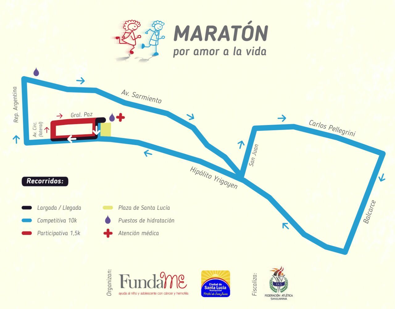 El próximo domingo, en Santa Lucía, se correrá el “Maratón por amor a la vida”, organizado a beneficio de Fundame, la fundación que ayuda a niños con cáncer y hemofilia. Las inscripciones están abiertas.