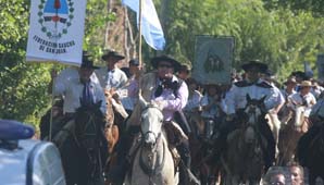 San Juan, 5 de febrero.- La ya tradicional cabalgata hasta el santuario José Dolores se desarrolló esta mañana, con la presencia de unos 200 gauchos que partieron temprano desde el predio, llegando al santuario tras cuatro horas de viaje.