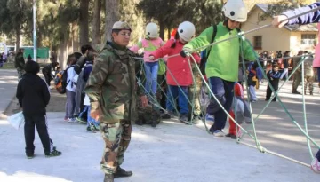 Sin miedo a la altura y concentrados en cómo sostenerse de una soga, un grupo de chicos se tiró en tirolesa. Otros niños escalaron paredes de madera, mientras que algunos otros jugaron a ser los choferes de los Unimog. Así vivieron más de 3.000 alumnos de distintas escuelas, las jornadas "Puertas Abiertas" en el DIM 22 (ex RIM 22).