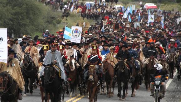 Desde temprano el paraje caucetero se vistió de gala. Banderas celestes y blancas en todos los rincones y algunas de países como Chile, Bolivia y Uruguay, también decoraron el oratorio. Sin embargo el jolgorio comenzó pasada las 14 cuando la columna de jinetes llegó tras una larga travesía. Con aplausos, gritos y algunas lágrimas de emoción la gente recibió a los gauchos que devolvieron el saludo sacándose el sombrero. Tras la llegada y algunos actos protocolares, cada rincón del oratorio de Deolinda Correa se convirtió en una parrillada.