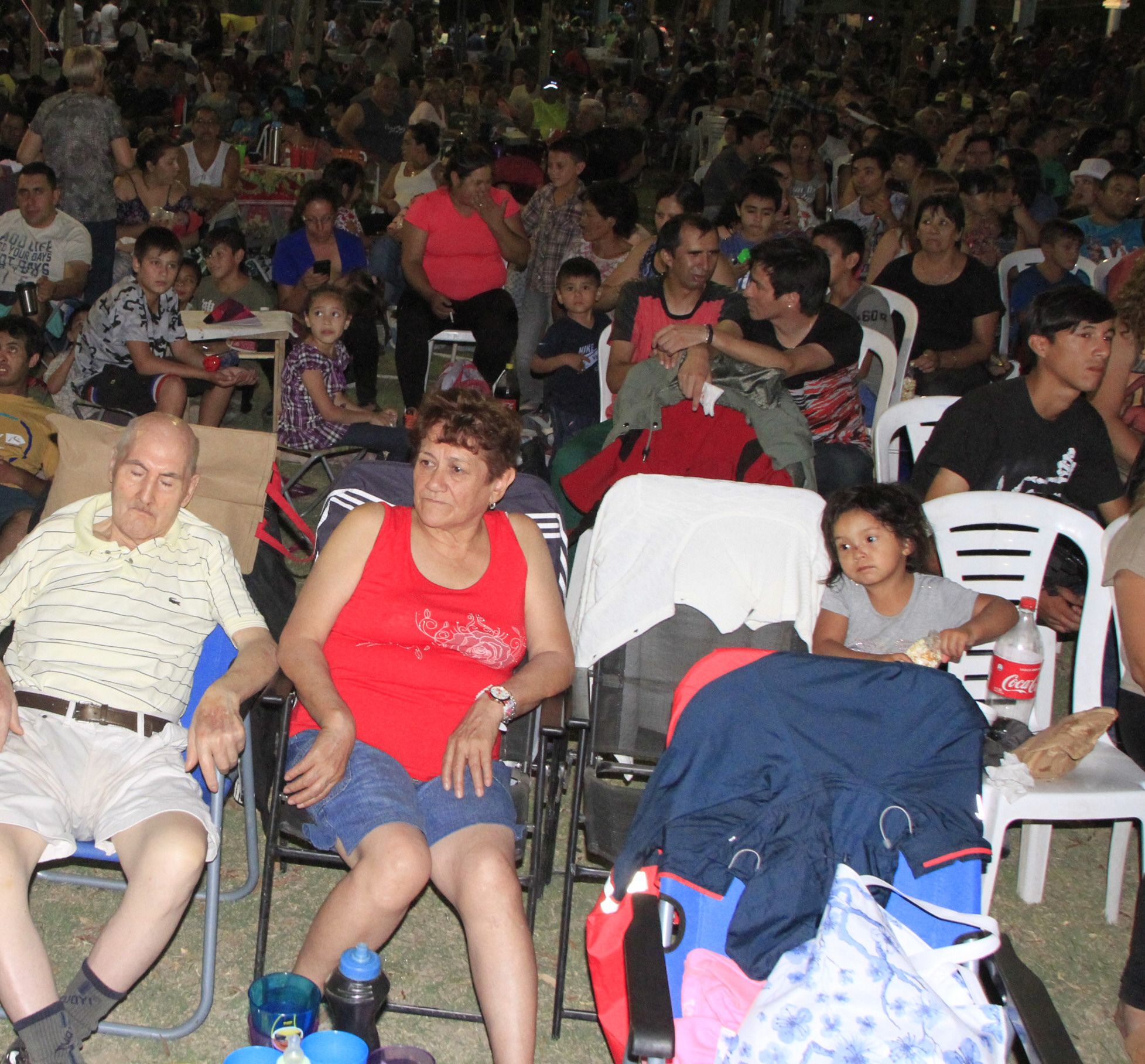 Como sucede todos los años los picnic pintaron distintas postales en el lugar de la fiesta. Si bien la Municipalidad de Albardón inauguró una extensión nueva del predio para que todos estuvieran más cómodos, durante la primera noche no quedaron espacios en blanco en el césped del predio. Desde la organización dijeron que hubo más de 40.000 personas y todas se hicieron notar. De hecho, en los alrededores de la sede de la fiesta no se podía ni caminar.
