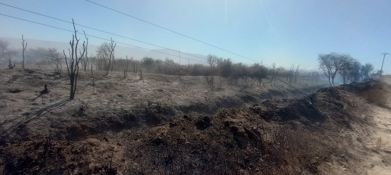 Otro foco importante por su peligro se originó en Médano de Oro, departamento Rawson, al extenderse por unas 20 hectáreas, según citaron desde la Brigada Forestal Rawson.