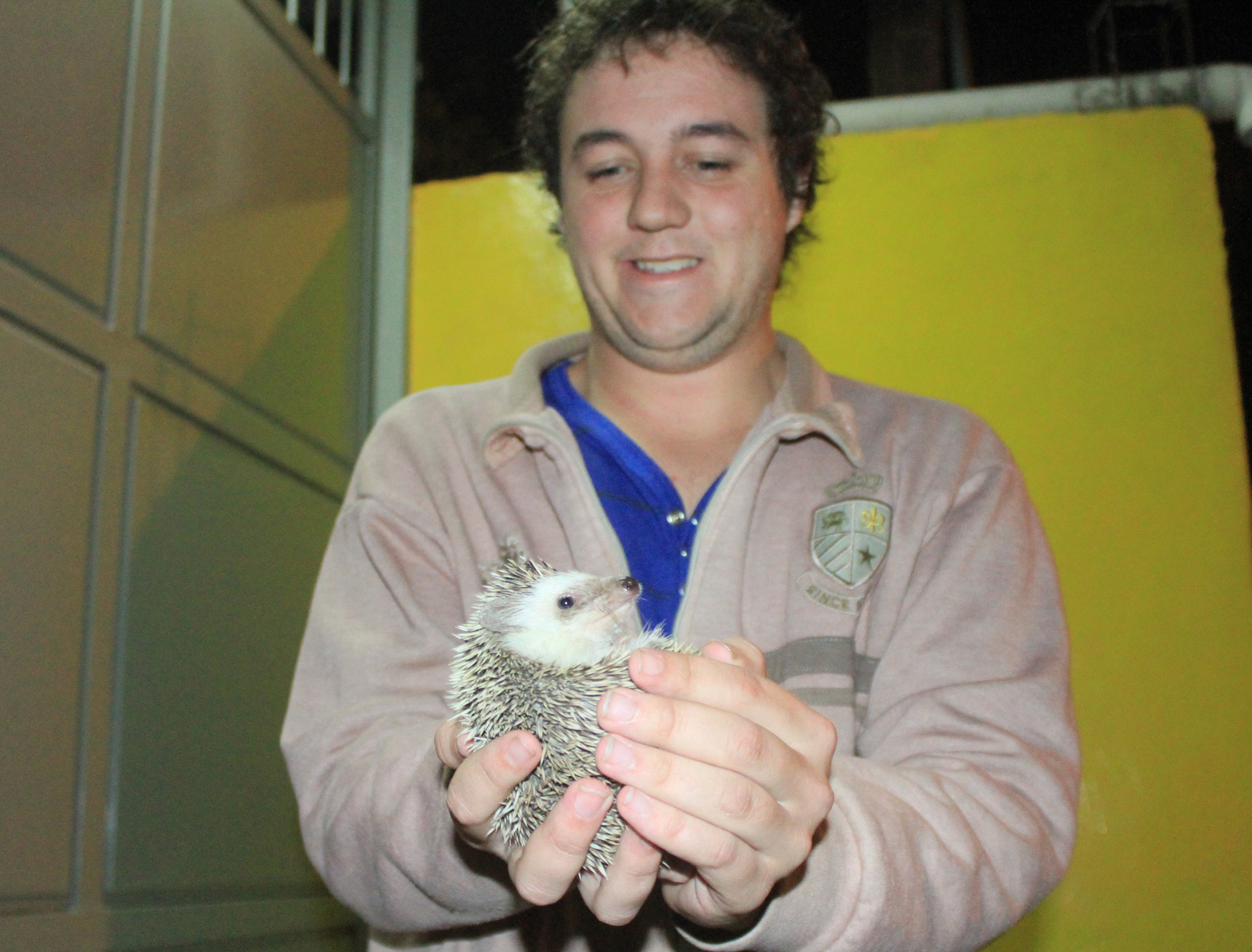 “Con el tiempo se acostumbró y por el olfato principalmente es que me reconoce, así que cuando está conmigo no se hace una bola que se hincha y estira las púas. Pero si hay alguien nuevo, lo hará sin dudas. Es un animal nocturno, por lo que es mi compañía en esas horas, que uso para estudiar”, afirmó Darío, que por ahora no piensa en obtener crías de su exótica mascota, que él prefiere calificarla como tierna y le da alimento balanceado para gatos.