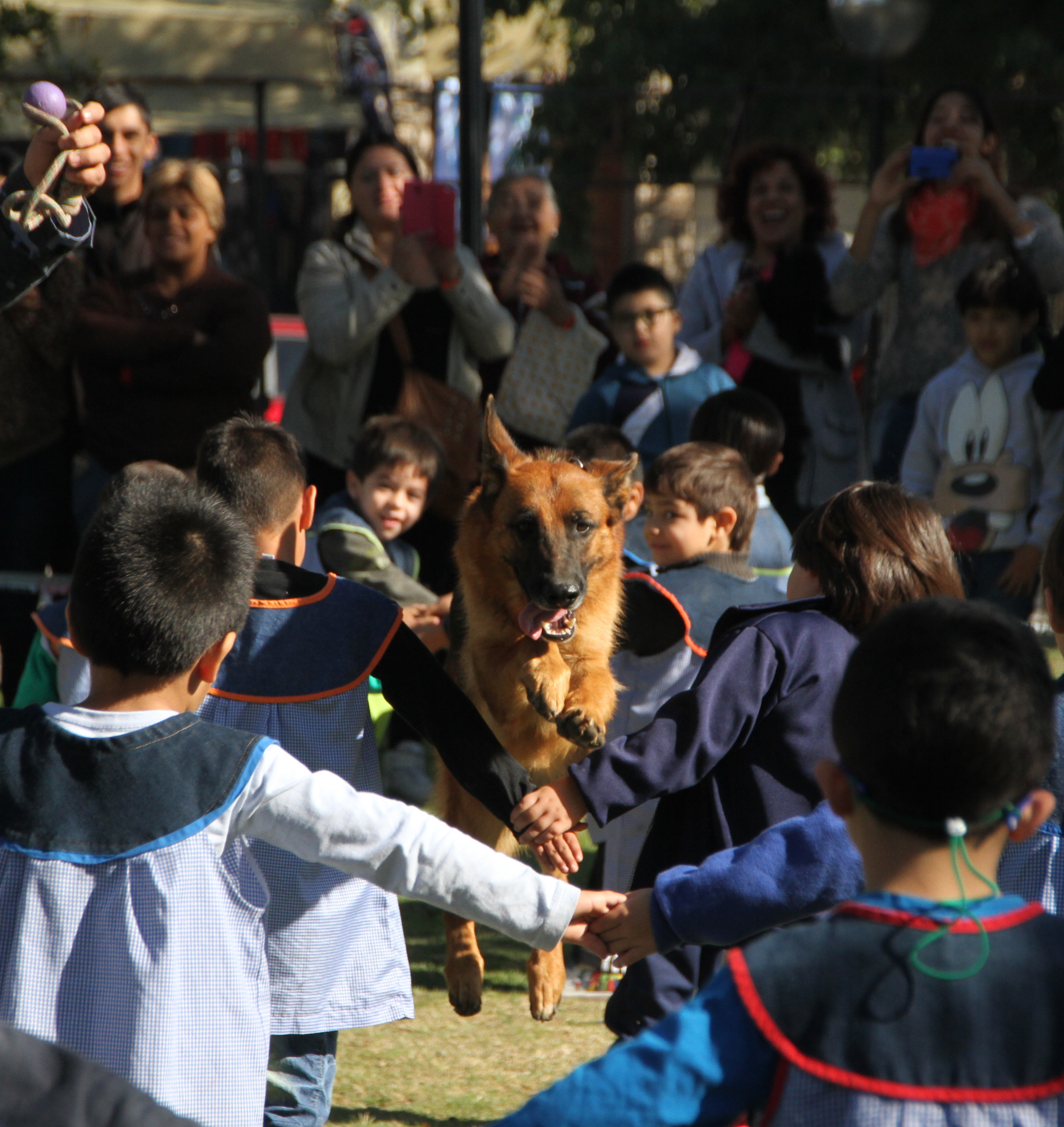 Un desfile de alumnos del ENI 42 con sus mascotas y una exhibición de acrobacias de perros de la Policía, fueron la función principal para conmemorar ayer el Día del Animal en la plaza Centenario, de Villa Krause. La iniciativa de la Municipalidad de Rawson apuntó a través de estas actividades concientizar sobre le tenencia responsable de mascotas.