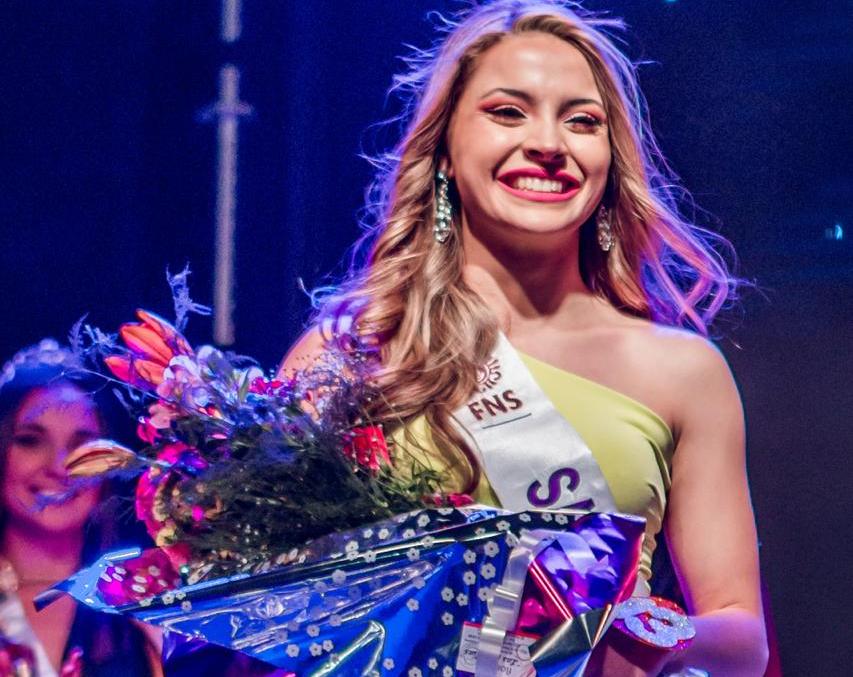 La joven, que es estudiante de la Licenciatura en Ciencias de la Educación, compitió con otras 12 chicas del departamento y recibió una ovación tras obtener la banda.