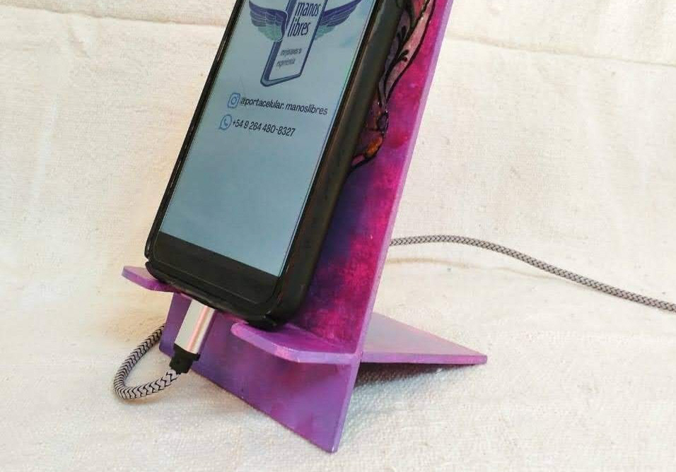 Estos portacelulares están realizados en MDF y algarrobo, con diseños personalizables y pintados con acrílico. Los precios rondan entre los 200 y 250 pesos. Redes: Instagram: