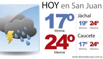 Según el pronóstico, la temperatura máxima no superará los 24 grados con vientos moderados del sector Sur en la mañana y del Noreste en la tarde. Durante todo el día se esperan lluvias y tormentas aisladas.