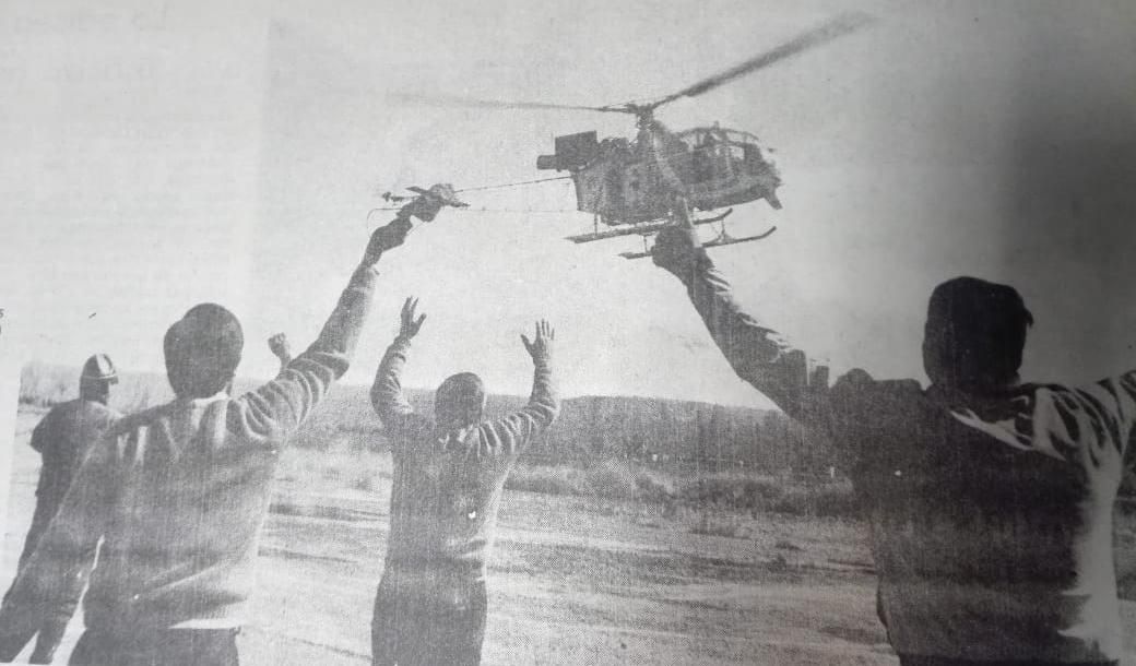 Hace 32 años el piloto Walter Gallardo y los empleados de Hidráulica, Manuel García y Alberto Medalla, salieron como lo hacían habitualmente a realizar las tareas de medición nívea en Cordillera. Lo que desconocían es que una tormenta obligaría al piloto a un aterrizaje forzoso que dejó al helicóptero Bell Ranger 206 clavado a 90 grados perdiendo humo por la tubera de escape.