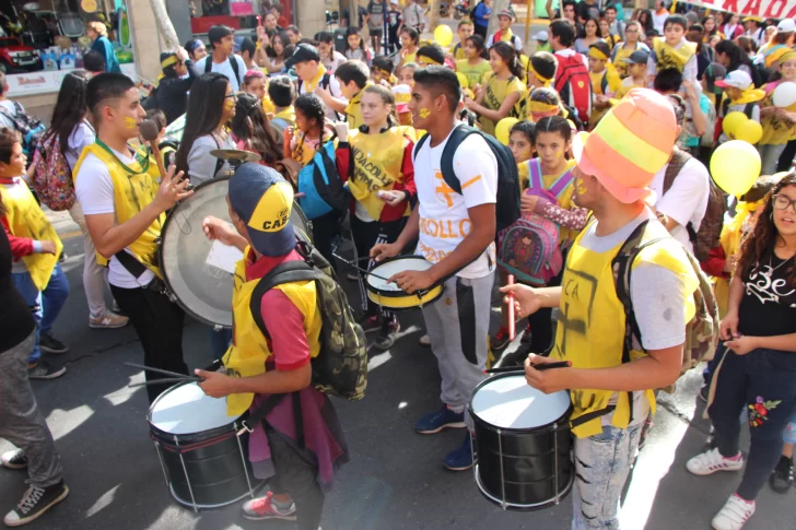Con las caras pintadas, coreografías y cánticos avanzaron por las calles de la Ciudad llevando un mensaje de paz y pidiendo por la familia.