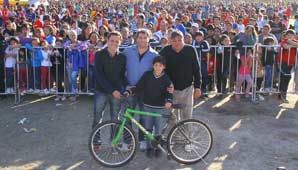 San Juan, 17 de agosto.- Familias enteras disfrutaron esta tarde del festejo por el Día del Niño organizado por la Agrupación Virgen de Fátima, realizado en el polideportivo del barrio Luz y Fuerza II. Hubo sorteos. Chocolate, juegos y payasos sirvieron para que los más chicos pasaran un momento inolvidable. También se sortearon decenas de bicicletas, entregadas a cada ganador por Andrés Montes, representando a DIARIO DE CUYO, el vicegobernador Sergio Uñac y Carlos Gómez, presidente de la Agrupación.
