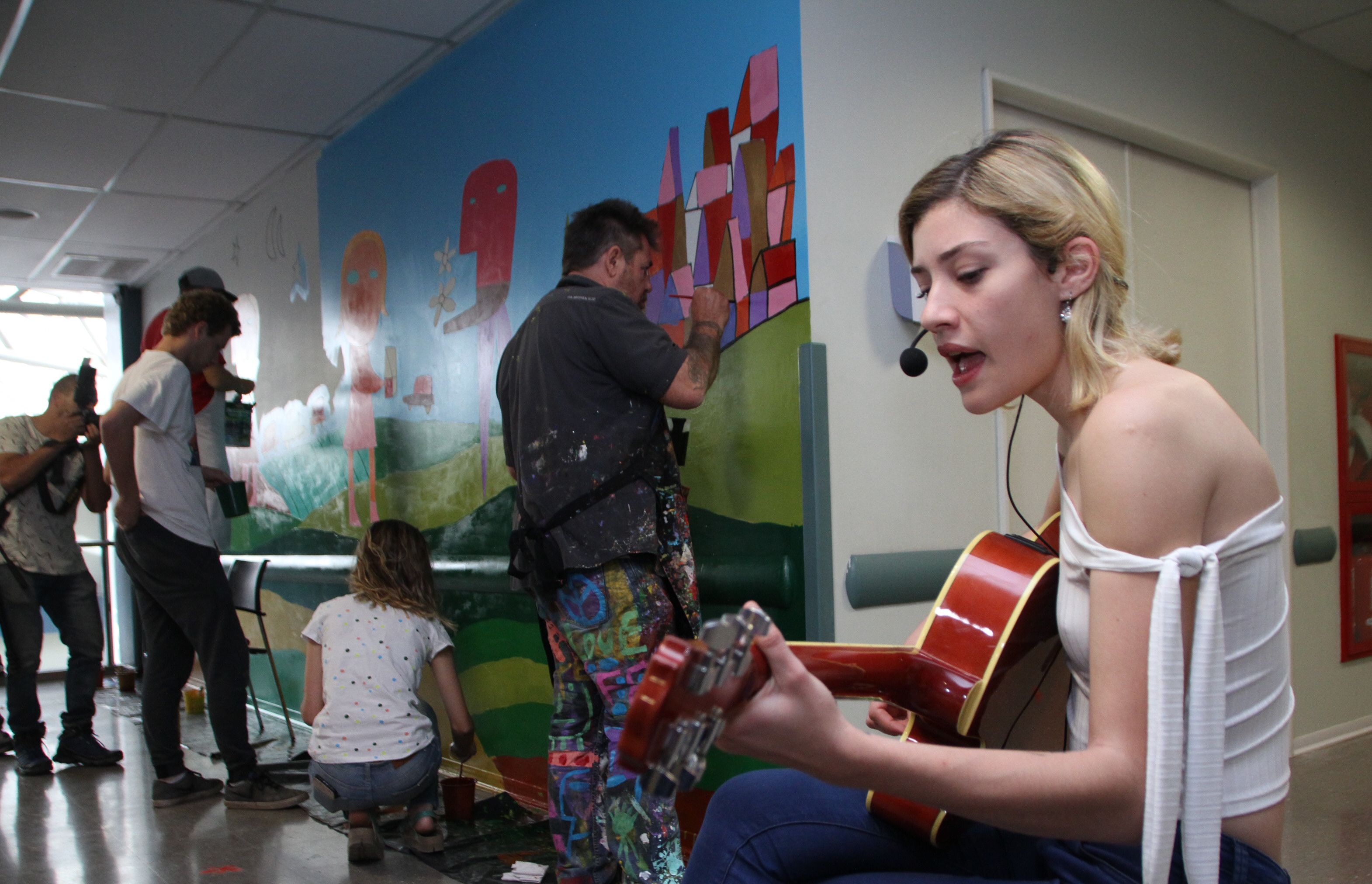 Antes de comenzar con el mural, Milo visitó a los niños oncológicos internados con quienes realizó algunos dibujos. En esta actividad lo acompañó Juan Carr, presidente de Red Solidaria que fue nominado al Premio Nobel de la Paz por su trabajo social.