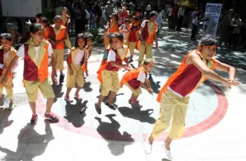 Unos con latas de leche disfrazadas de redoblantes y vistiendo chalecos de colores; y otros contorneándose al ritmo de una batucada. Alumnos de diferentes escuelas de Chimbas regalaron unos minutos de alegría a la gente que pasó ayer por el cruce de las peatonales en una especie de minicarnaval, que sirvió para promocionar la primera edición de la Feria del Libro y el Arte Popular que se hará en ese departamento, por su centenario. Pero además, un grupo cantó a coro una canción y otro presentó un libro con dibujos con el paso de la columna de Cabot por la calle donde actualmente está su escuela, para una actividad cultural que rompió las postales diarias de la Peatonal.