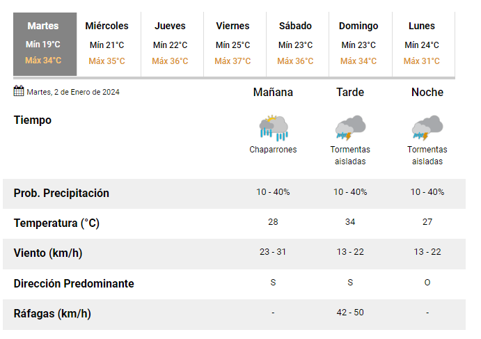 Para el resto de la semana se espera que las máximas oscilen entre los 31 y 37 grados.