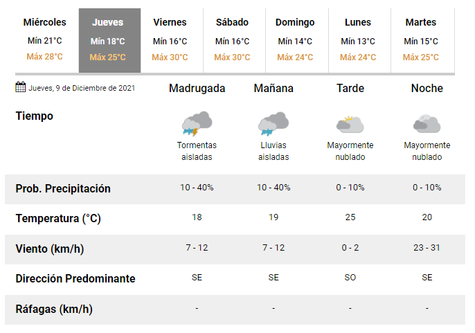 Del mismo modo, pronostican que para el resto de la semana las máximas oscilen entre los 30 y 24 grados.