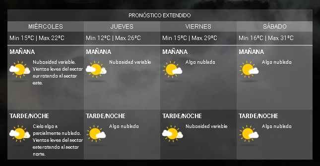 La jornada se presentará con nubosidad variable y vientos leves del sector sur, rotando al sector este en la mañana y en la tarde-noche, al sector norte.