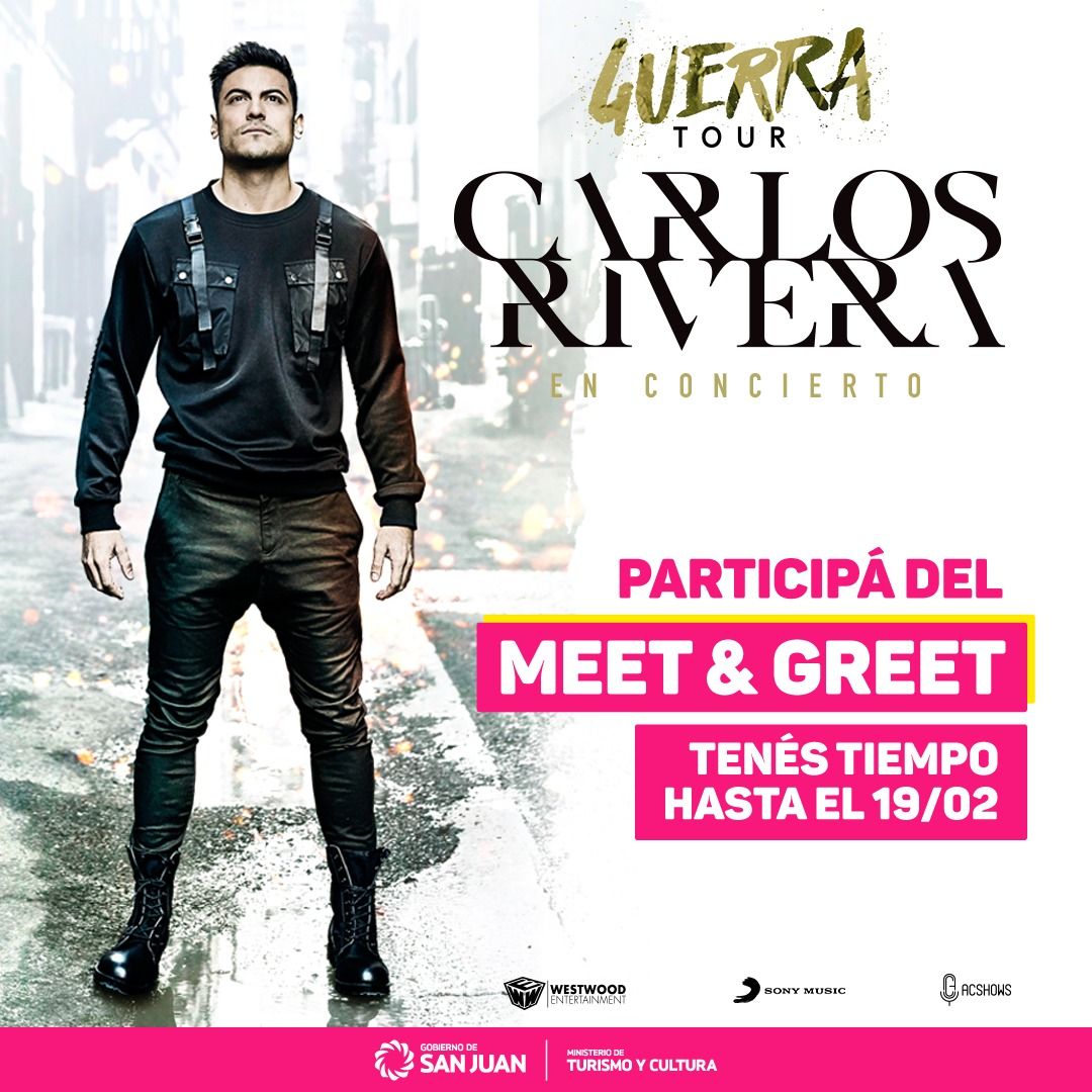 Carlos Rivera despierta locura en sus fanáticas y las sanjuaninas que sueñen con conocerlo de cerca tendrán su oportunidad gracias a un concurso del  Ministerio de Turismo y Cultura.