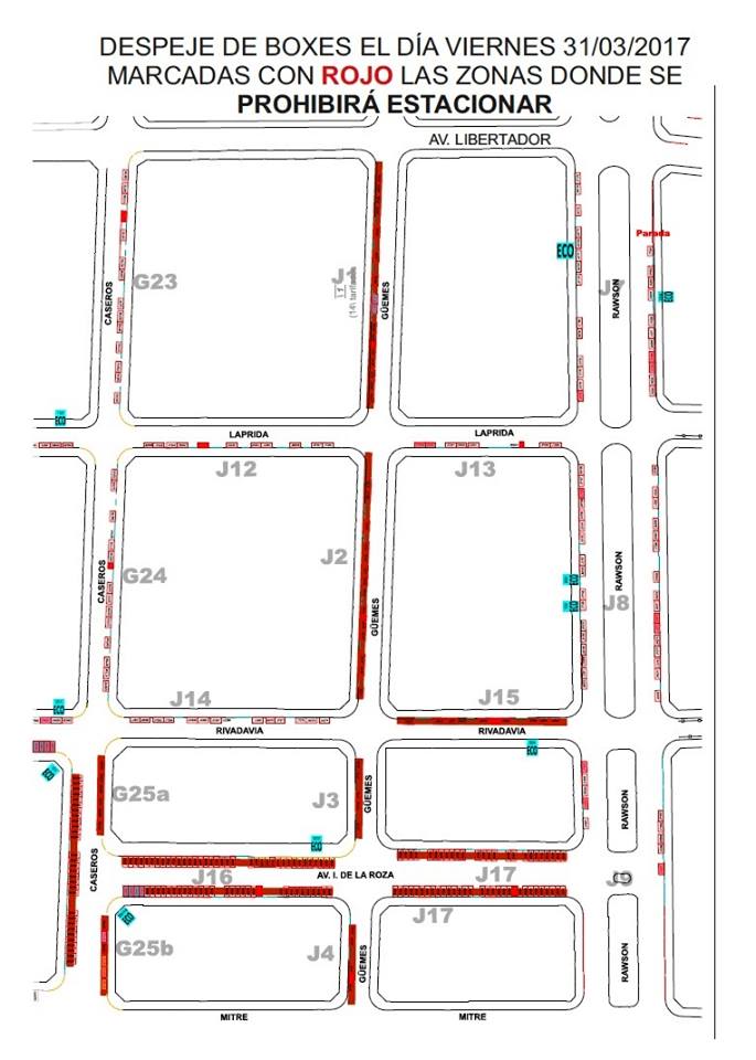 También, se realizarán  cortes y desvíos de tránsito impidiendo la circulación sobre Av. Ignacio de la Roza, desde Av. Rawson hasta Caseros. Se permitirá la circulación solo por las vías transversales. Una vez que sea superada la capacidad en Av. José Ign. de la Roza, se montarán cortes de tránsito en las siguientes intersecciones: