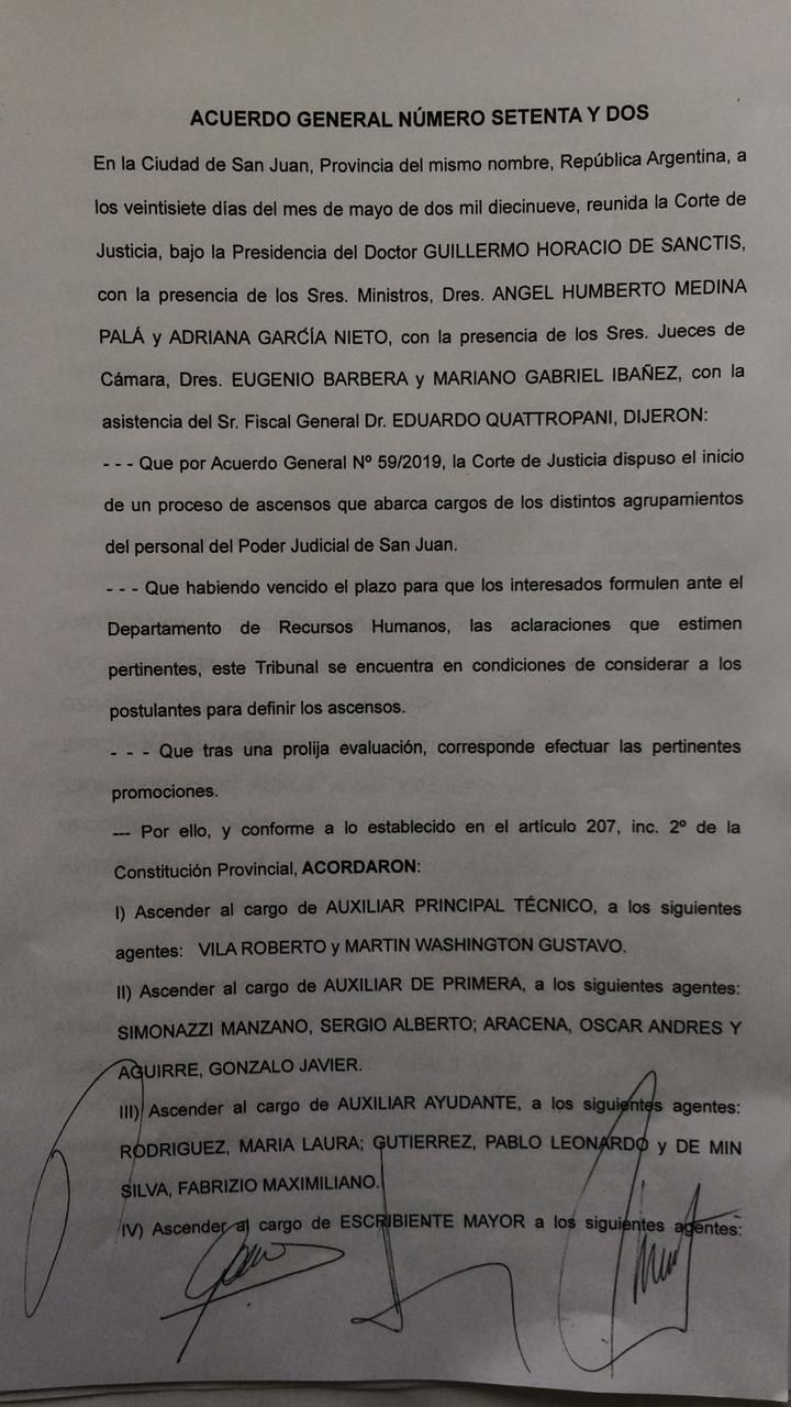 Este jueves, el Poder Judicial dio a conocer dos listados: el de ingresantes y los ascendidos. El primero se trata de las personas que rindieron en el 2018, el concurso que constaba de tres instancias y una vez aprobado, una entrevista con el área de Recursos Humanos.