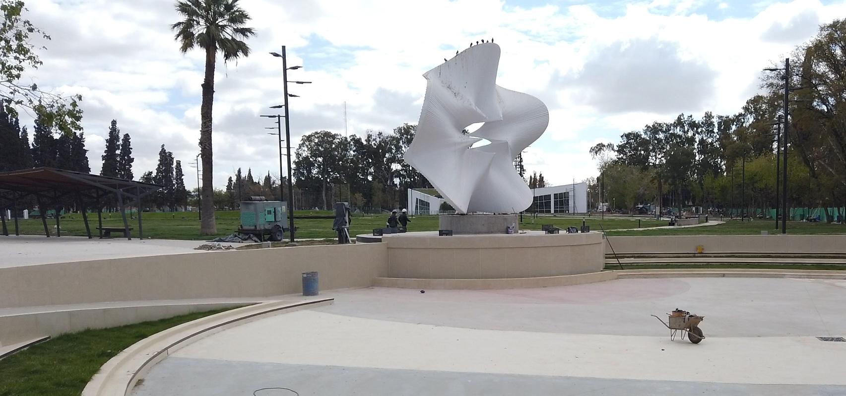 Además, tendrá un cartel explicando la obra para quienes no conocen su historia. Por el momento, los visitantes lo verán de color blanco con el patinódromo a sus pies y una fuente con cascada.
