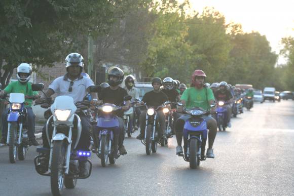 La concentración fue en la Biblioteca Popular Sur, ubicada en República del Líbano y Santiago del Estero, en Rawson. Desde un escenario montado en la puerta de esa sede, miembros de la Dirección de la Juventud de la provincia, de la agrupación Juventud del Medanito y la Unión de Trabajadores Motorizados recibieron a los motoristas. En su mayoría eran repartidores, cobradores, cadetes y mensajeros que hacen uso de las dos ruedas como su principal medio de trabajo y que enfrentan a diario el tránsito de la provincia.