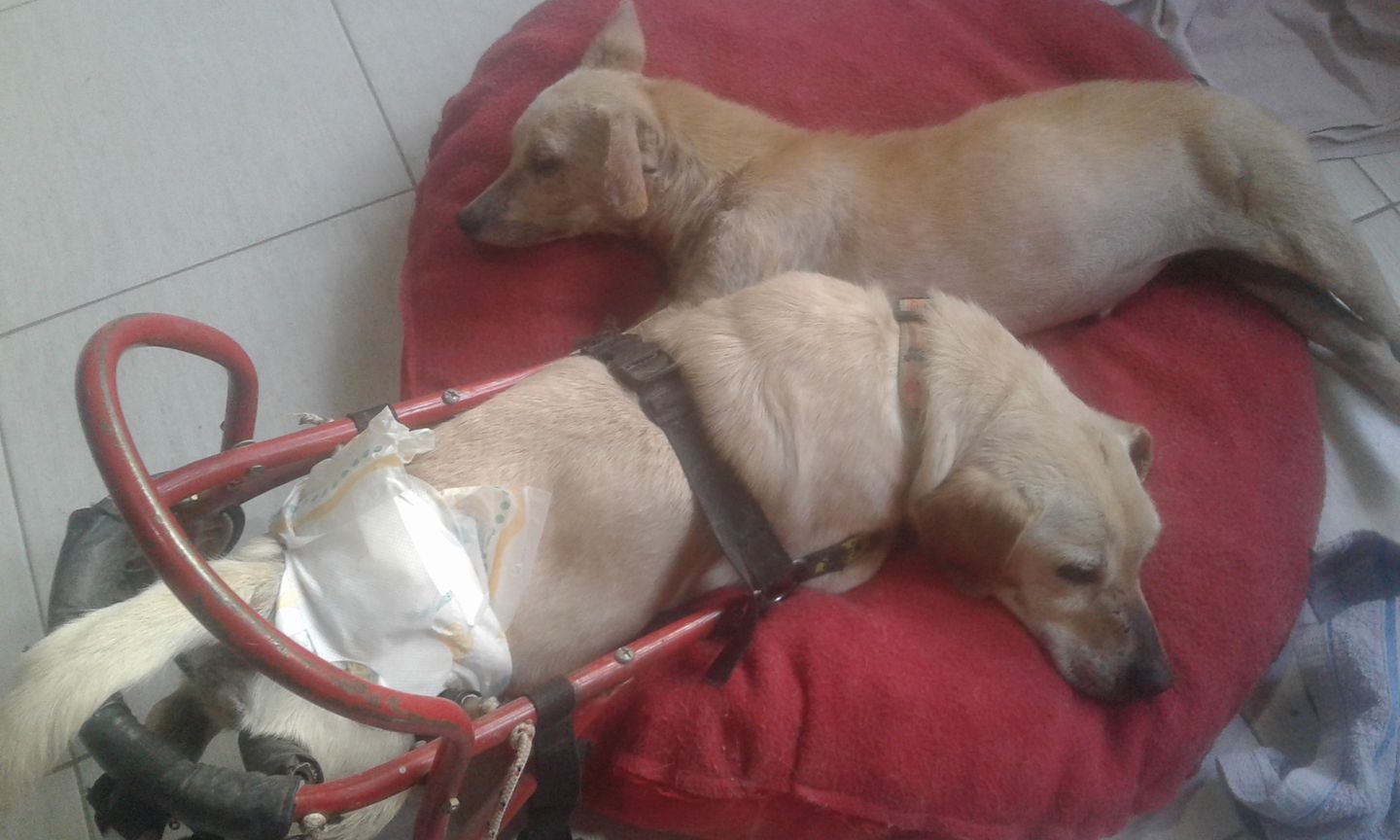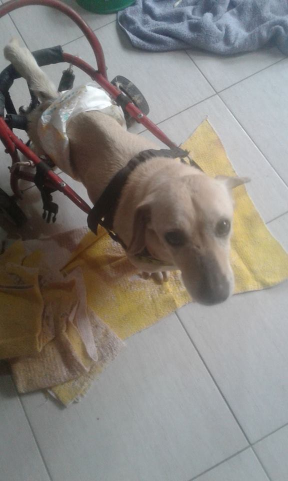 Fue rescatado en el 2015 en la Quebrada de Zonda y entregado a una familia adoptiva que lamentablemente no lo cuidó. Cecilia fue a verlo y notó que el perro se arrastraba. "Se lo saqué a esa familia y el veterinario me dijo que no era producto del cáncer sino de un fuerte golpe", explicó.