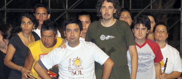 "Esta tormenta la ha provocado mi afán de educar al pueblo", dice un joven y efusivo Domingo Faustino Sarmiento mientras mira, plantado con firmeza, el avance de un grupo de oligarcas al grito amenazador de "¡muerte al loco!". El Maestro levanta entonces los brazos, hace algunos movimientos y comienza un vaivén, un dibujo oscilatorio, como un mar picado, que tiene de un lado al sanjuanino bregando por la educación pública y del otro a la oligarquía tratando de evitarla. Es una de las escenas del musical "Sarmiento: un hombre y sus mundos", que será representado en el autódromo El Zonda-Eduardo Copello la noche del sábado 26, para el cierre de la edición 2011 de la fiesta.