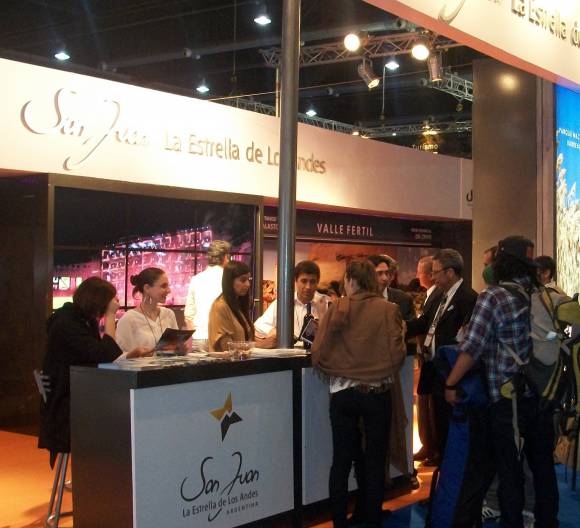 ‘Mostramos alternativas, nos consultan por todas las opciones porque cuando llegan al stand se asombran con el potencial que tiene San Juan, y cuando ven los backlights del Submarino de Ischigualasto con los músicos vestidos de smoking, o la pareja de tango, mientras los turistas disfrutan de un varietal, los visitantes manifiestan sus ganas de incursionar en semejante experiencia‘, dijo el director de Turismo de la provincia, Aníbal Moreno.