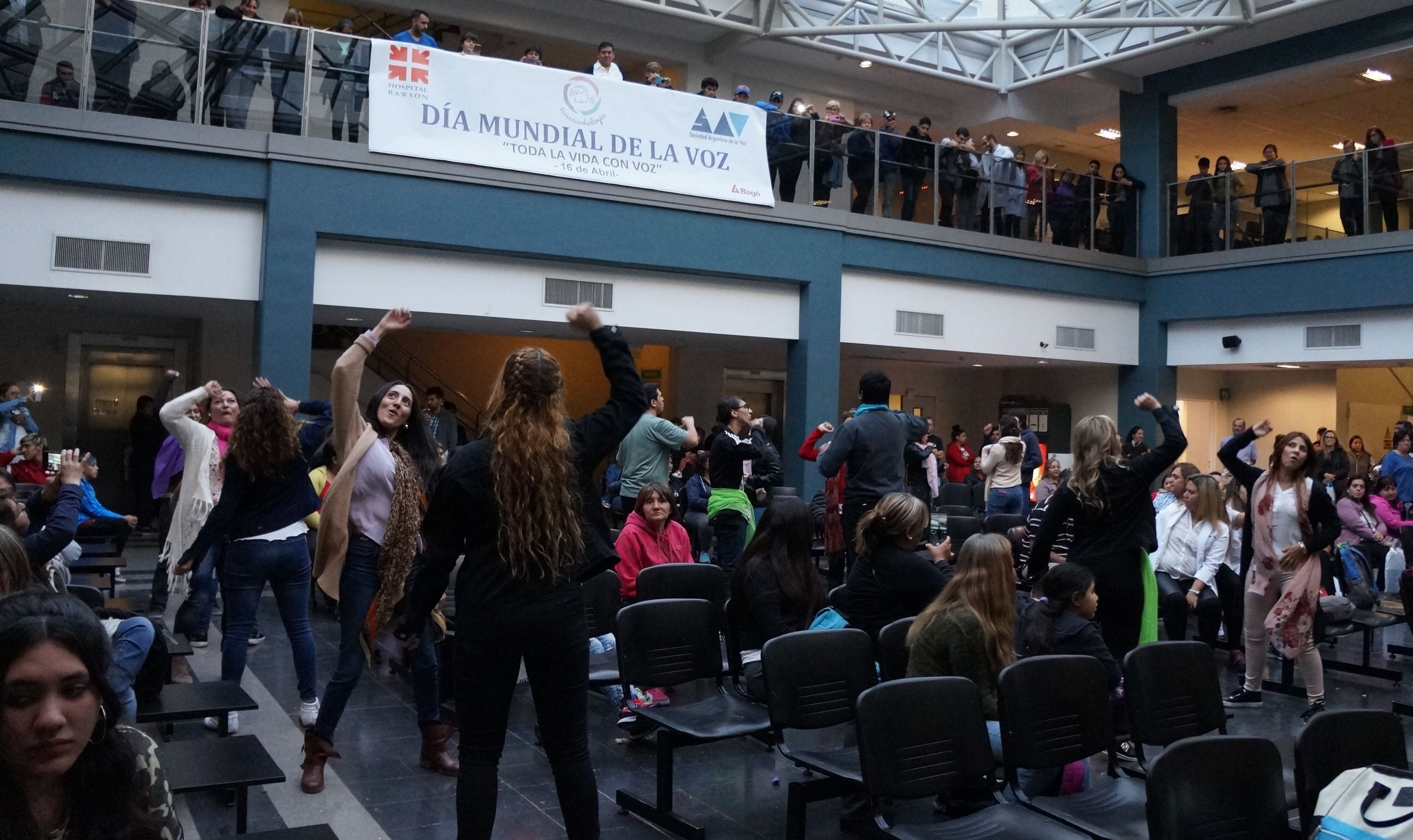 El Coro Show se presentó ayer en el hall central del Hospital Rawson. La intervención artística tuvo el objetivo de generar la toma de conciencia y promoción del cuidado de la voz, en el marco de varias actividades. Las actividades por la Semana de la Voz continuarán en el Rawson, el próximo lunes de 9 a 11.30 con una charla abierta. "La voz como instrumento de trabajo" será la temática. Posteriormente, el martes y el miércoles llevarán a cabo en el Servicio de ORL del hospital evaluaciones médicas. Por su parte, el Marcial Quiroga también tendrá actividades. El lunes se realizará el Ateneo "Criterios, diagnóstico ORL y Vocológico en patologías laríngeas", a las 10.30, en el Salón de Actos del hospital. Y el miércoles, dictarán un taller abierto al público. Será a las 9, también en el Salón de Actos.