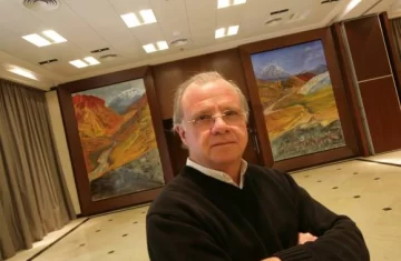 Pintar la cordillera desde sus mismas entrañas, sometido a sus propias leyes, bajo el sol incandescente o el gélido frío, con el viento a su antojo y su propia tierra mezclada entre los pigmentos, rehenes a su vez de las aguas heladas que les imprimen formas jamás vistas. Imponente, amoldarse a su designios, tiranos a veces, condescendientes otras. Reflejarla, finalmente, tal como ella quiere, hasta donde ella quiere. Convertirse, en definitiva, en apenas un instrumento librado a su dominio, en un pincel humano guiado por su mano rocosa. Entonces, cuando ya uno se ha consustanciado con ella, desde la inmensidad y la insignificancia, evocar otra grandeza -humana esta vez- que también se estremeció entre sus laderas profundas y descansó bajo su cielo: La gesta sanmartiniana. Y, finalmente, lograr plasmar sobre lienzo todas esas sensaciones, esa experiencia. ¿El resultado? Dos imponentes murales que reinan en el salón Cruce de los Andes del flamante Centro Cívico. Y detrás de estas dos piezas de 2,60 por 3,50 metros, cuyos colores se roban las miradas en medio de una ambientación minimalista, está el artista plástico y arquitecto Carlos Gómez Centurión. Fue a él a quien el Gobernador de la provincia le encomendó realizar una obra que de algún modo resumiera el espíritu con el que querían dar vida al lugar. Pintor de entre montañas, Gómez Centurión -que ya había hecho varias incursiones por el estilo, una de ellas la recordada aventura del Mercedario, que concluyó con la muestra Digo la cordillera en 2004; y que también había participado del Cruce Sanmartiniano- volvió a adentrarse en los macizos sanjuaninos para crear estas obras que permanecerán expuestas en esta sala de reuniones protocolares de manera permanente.