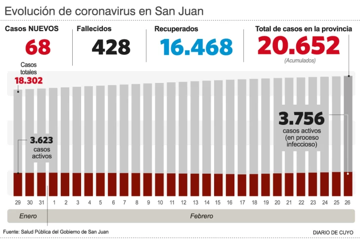 Dos mujeres y dos hombres, uno de ellos de sólo 48 años, fallecieron a causa de Covid, informó Salud Pública. De esta manera, suman 428 los decesos. A su vez, hubo 68 casos y el acumulado se eleva a 20.652. En tanto, hay 28 internados en áreas críticas; la mitad de ellos con respirador artificial.