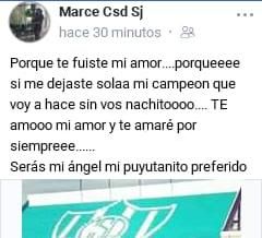 Fue su mamá, Marcela Trigo, quien le dedicó unas sentidas palaras de despedida en las redes sociales. "¿Por qué te fuiste mi amor, por qué me dejaste sola mi campeón. Qué voy a hacer sin vos Nachito?…Serás mi ángel, mi puyutanito preferido", escribió.