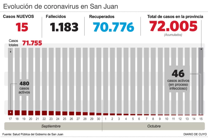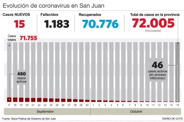 Por otro lado, ayer hubo 15 nuevos casos y si bien nuevamente hubo un aumento con respecto a las cifras de principios de mes, siguen siendo pocos. Con estos positivos, el acumulado de personas infectadas se eleva a 72.005.