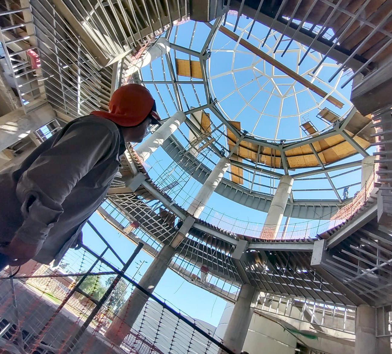 Desde afuera, los cilindros del museo llaman la atención. Es que dan la impresión de que después de mucha espera, la obra ya transita su parte final. Y efectivamente es así. En el interior, personal de la empresa que se encarga de la obra trabaja sin parar: ponen vidrios en las cúpulas, pintan algunos sectores que ya están casi listos y preparan las escaleras y el ascensor panorámico que tendrá este museo. "Estamos en un 90%. El plazo que tenemos es mitad de año, pero eso no depende de nosotros. Estamos esperando que se termine el guión del museo porque eso influye en la obra. Tenemos que conocerlo para definir temas como aberturas, iluminación y hasta saber si colocarán pantallas y dónde, para poder definir terminaciones de las salas. La obra gruesa está lista, pero nos falta también la colocación de pisos, la carpintería y parte de la pintura porque eso está sujeto al guión. La idea no es terminarlo y que después haya que modificarlo porque no se adapta a la muestra. Es decir, no queremos avanzar y tener que dar pasos para atrás", dijo Toro.