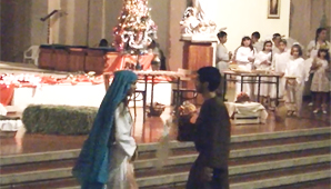 San Juan, 25 de diciembre.- Cerca de 50 chicos realizaron una espectacular presentación de Belén en la Catedral por los festejos de la Navidad. Por unas horas el tempo se convirtió en un escenario para medio centenar de chicos de la Acción Católica de la Parroquia San Juan Bautista.