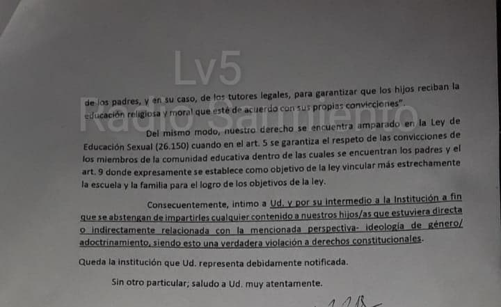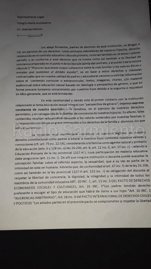 Con el documento presentado, los padres dejaron en claro que la solicitud para el colegio es no tratar estos temas y aseguran que el motivo de la reacción del alumno es por haber abordado mal el tema.
