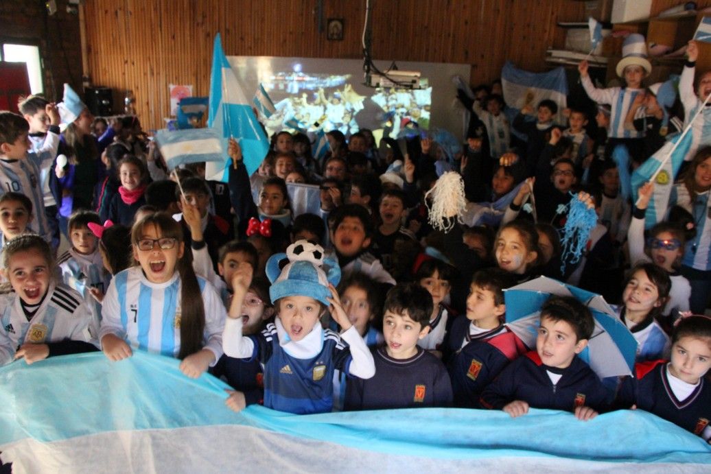 Los chicos se nuclearon el microcine de la institución para ver el partido ante Croacia pero los más pequeños se quedaron en sus aulas para apreciarlo a través de los televisores.