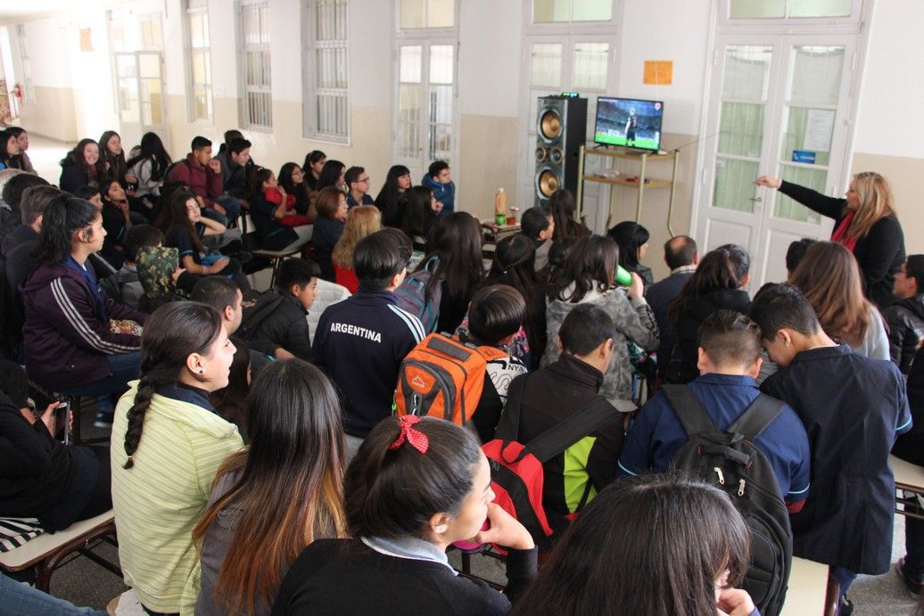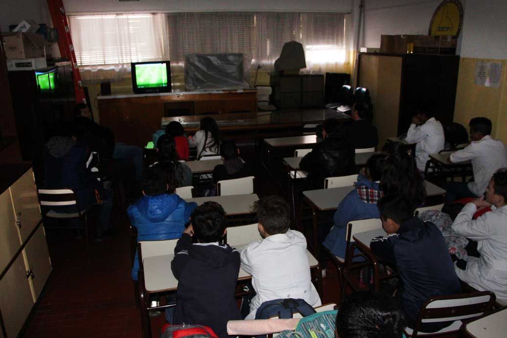 Alrededor de 70 alumnos se concentraron en el pasillo central de la escuela para mirar el partido. Pero muchos, no aficionados al fútbol, aprovecharon para estar en el kiosco o pasear en el patio.