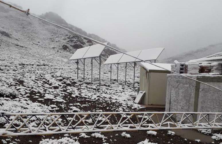 Mientras en zonas de la provincia se registra lloviznas y la temperatura máxima pronosticada para este sábado es de sólo a los 18 grados, en la reserva Don Carmelo, ubicada en zona de altura de Ullum, cae nieve.