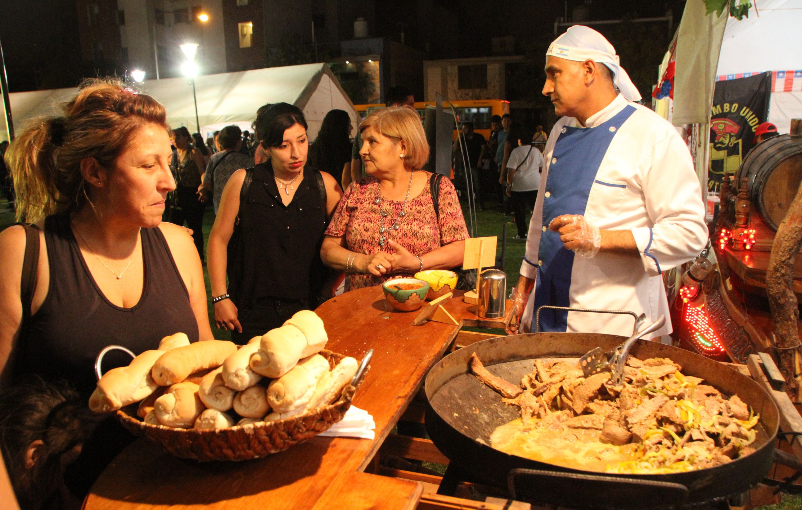 Lejos de espantar a la gente, el viento Zonda hizo que el aroma de la paella se mezclara con el de los tacos y el de la punta de espalda con verduras. Y, a pesar de que pasadas las 21 hacían más de 30ºC, una multitud copó la Plaza Hipólito Yrigoyen. Esto fue en el marco de la segunda edición de la Feria Gastronómica de las Colectividades. Un encuentro en el que las delicias de varios países estuvieron a disposición de la gente y a precios accesibles. Desde arepas hasta chifles, pasando por tacos de las más deliciosas variedades y los postres más tradicionales de Alemania, fueron algunos de los platos típicos que se pudo degustar ayer en el encuentro que reunió a España, Bolivia, Italia, Francia, Colombia, Israel, Chile, México y Alemania.