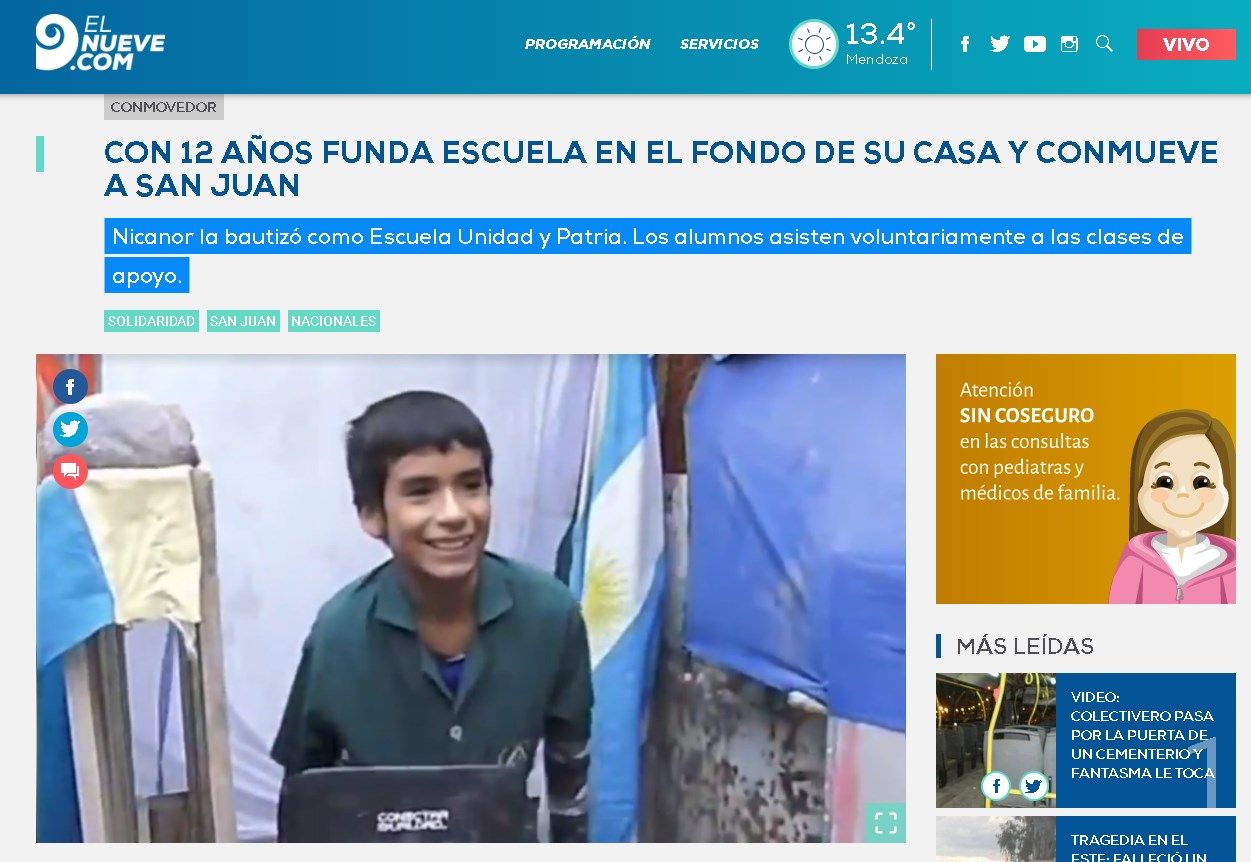 El caso ejemplar de Nicanor rápidamente recorrió los medios de todo el país.