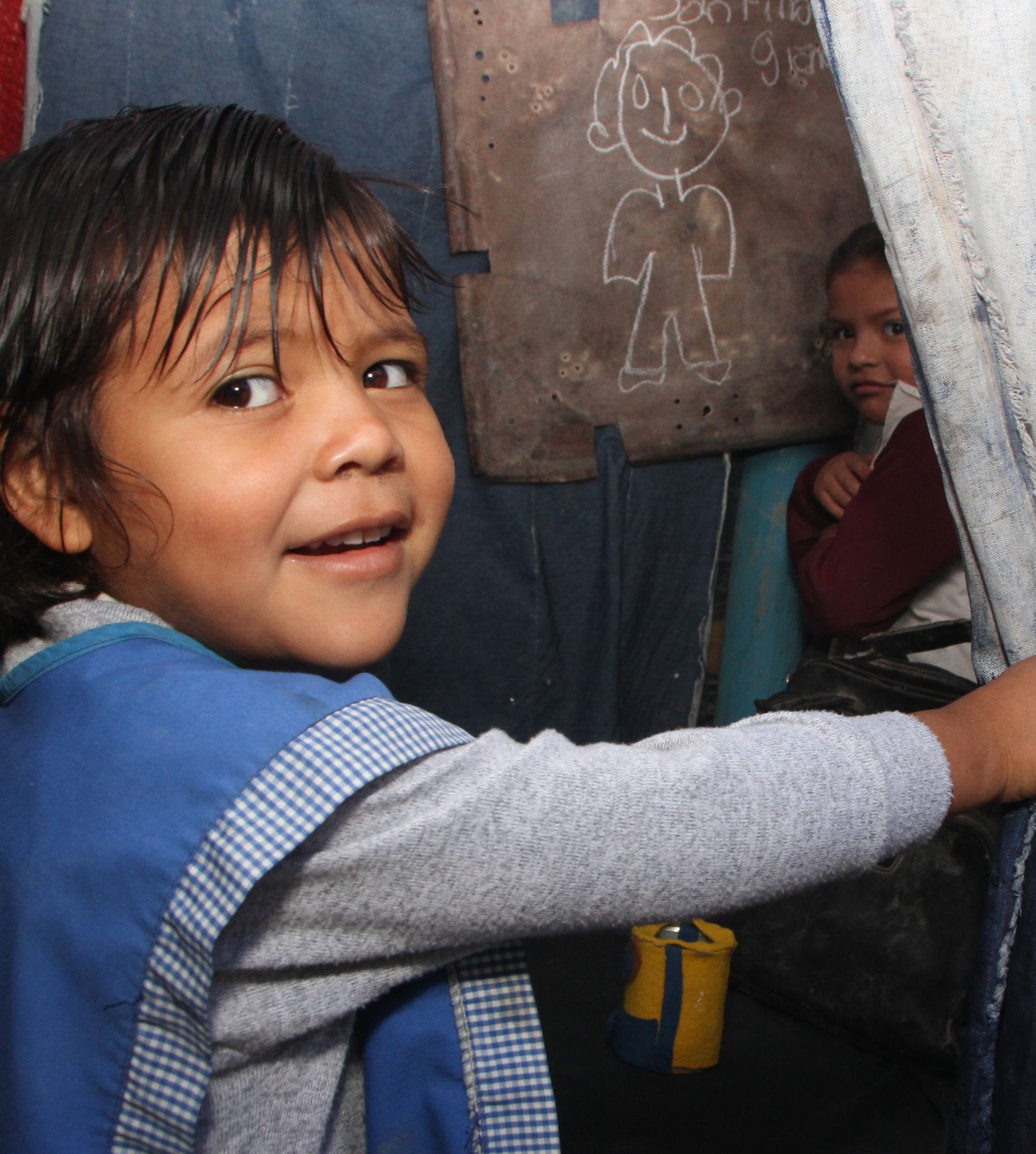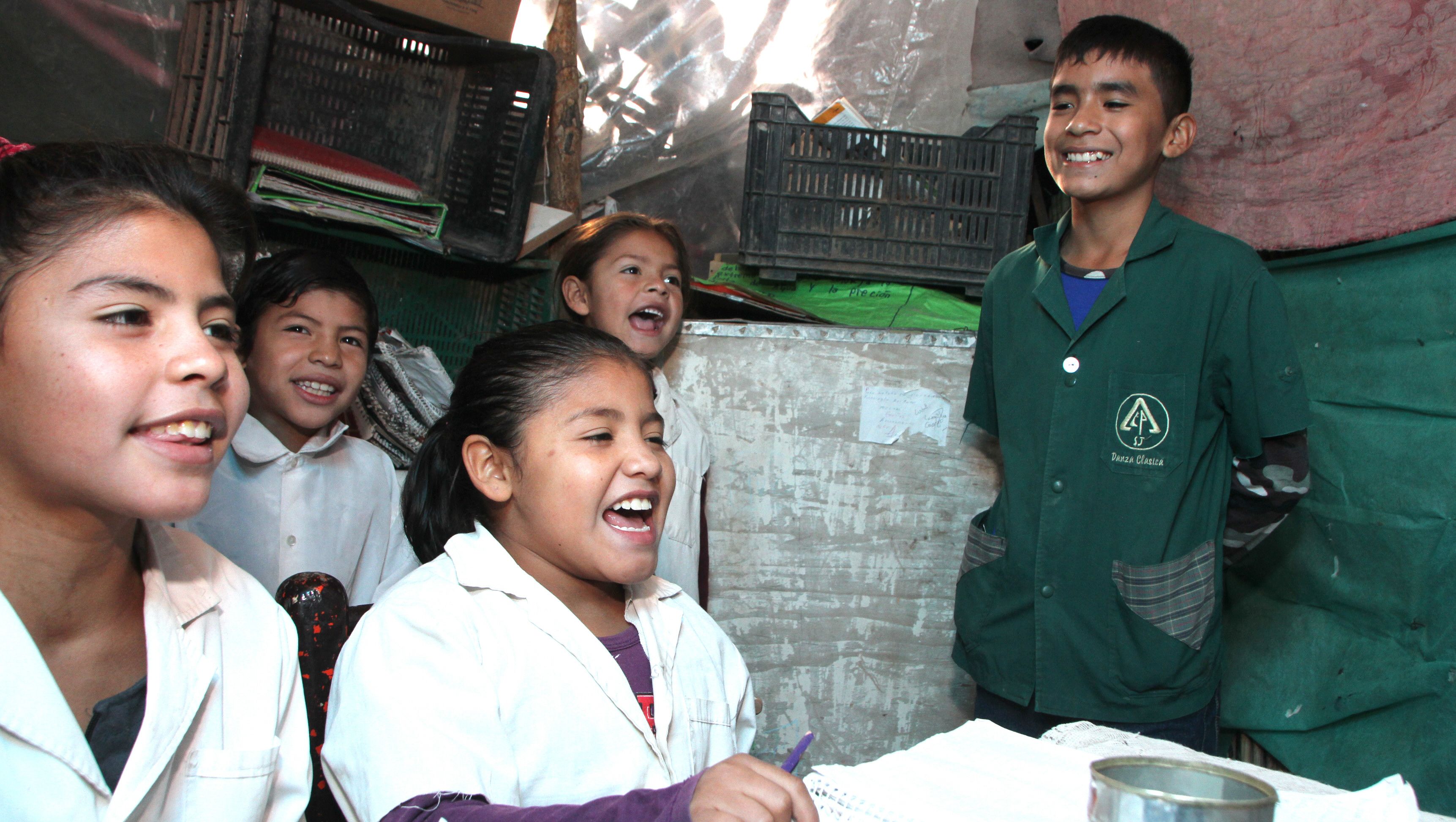 Corina tiene 4 años y asistencia perfecta en "la escuela". Asiste con sus hermanos y le encanta dibujar en cada clase. Su "maestra" es Priscilla Espinosa, una nena que tiene 10 años y que todos los días la hace jugar y hacer dibujos. "Me gusta venir a esta escuela porque me divierto mucho", dijo Corina que vive a pocas casas de la "escuelita" que Nico fundó en el barrio.