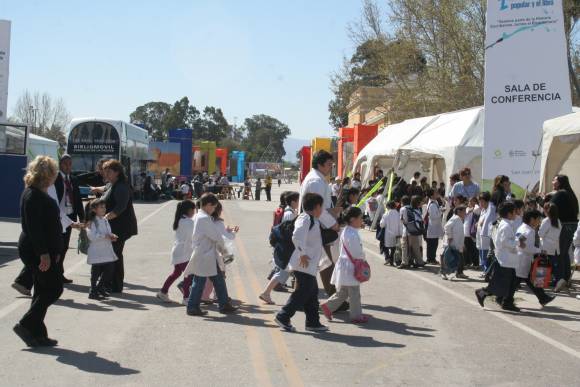 "¡Vengan, acomódense donde puedan, que tenemos el corazón más grande que la casa y por eso la casa nos quedó chica, pero seguimos recibiendo gente!", invitaba la narradora del Bibliomóvil del Congreso de la Nación a los chicos de la Escuela Agustín Gnecco, del Barrio Los Tamarindos, que llegaban a la 2da Feria del Libro y la Cultura Popular ayer por la siesta. En la carpa ya casi no quedaba lugar libre, y por eso los grupos que ingresaban al Predio Ferial se dividían para no perderse ningún punto del recorrido. Curiosos, los niños se acercaban a los stands de las diferentes bibliotecas populares y ONG, sin poder resistir la tentación de tomar los libros que se exponían en cada lugar. "Miren tranquilos, chicos, se puede tocar", les dijo conciliadora la representante de una librería comercial, ante la mirada seria y vigilante de las maestras que no querían perder de vista lo que hacían sus alumnos.